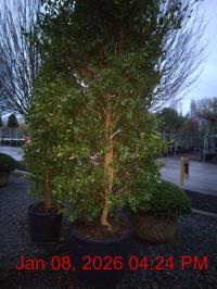 Cerise Semi-Double Flowers Oct-Jan. H3m S3m. Light Scent. Dense Upright Habit. Slightly Serrated Foliage. Pots/Containers. Fast Growing. pH Acidic. Shelter. Shade Tolerant. Moist Well Drained Sites. Evergreen. Sun-Semi Shade.