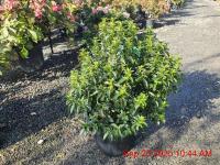 White/Lime Flowers May-Jun. H1.3m S2m. Glossy Green Foliage. Topiary-Trait. Evergreen. Sun-Semi Shade.