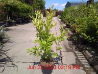 Large Cream-Yellow Stamen Flowers Apr-May. H2,5m S1.5m. Scent. Pink Fruit. Early Colour. Pots/Containers. Slow Growing. Dense Bushy Pyramidal Habit. Slight Acidic pH. Shelter. Small Sites. Moist Well Drained Sites. Evergreen. Sun-Semi Shade.
