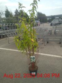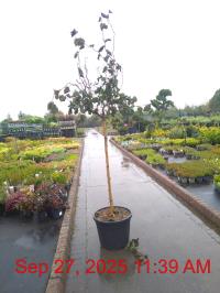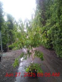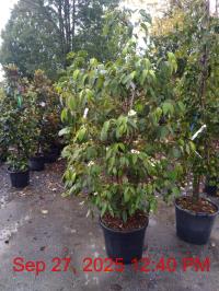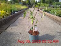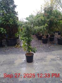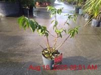 Large Creamy White Plume Flowers Aug. H8m S6m. Fruit. Striking Tropical Foliage. Autumn: Yellow/Orange/ Red. Vase Habit. Spiny Stems. Wildlife. Shelter. Deciduous. Sun-Semi Shade.