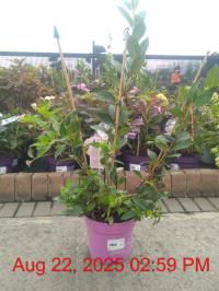 VIBURNUM tinus 80-100cm Code:VIB087 Petite Blushed Cream/Pink Flowers Jan-May. H4m S4m. Scent. Blue Fruit. Evergreen. Sun-Semi Shade.