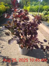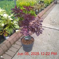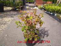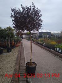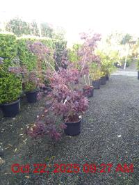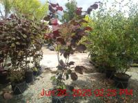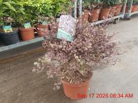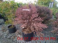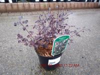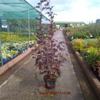 Purple-Red Flowers Apr-May. H2m S0.7m. Red-Flushed Fruit. Pots/Containers. Attractive Violet-Red Lobed Foliage. Compact Upright Bushy Habit. Autumn Colour. Fast Growing. Small Sites. Wind Shelter. More Wind Tolerant. Moist Well Drained Sites. Deciduous. Sun-Semi Shade.