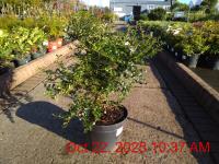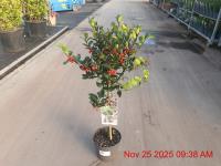 Creamy White Bell Flowers Oct-Dec. H2m S1.5m. Attractive Red Fruit. Round Glossy Dark Green Foliage. Pink-Red Shoots. Pots/Containers. Late Colour. Winter Interest. Compact Variety. Dense Upright Habit. Wildlife. Moist Well Drained Sites. Evergreen. Sun-Semi Shade.