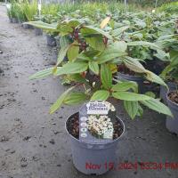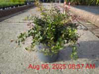 Blush Pink Flowers Jun-Oct. H1.5m S1.2m. Scent. Wildlife. Green Cream Edge Foliage. Pots/Containers. Even Round Habit.Lengthy Bloom. Late Colour. Autumn Red. Well Drained Sites. Evergreen. Sun-Semi Shade.