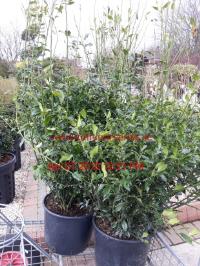 White Flowers Feb-May. H2.5m S2.5m. RHS Merit. Wildlife. Metalic Fruit. Evergreen. Sun-Semi Shade.
