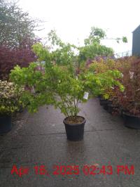 Japanese Maple. Red Flowers Apr. H8m S8m. Red/Green Fruit. Attractive Deeply Lobed Green Foliage. Pots/Containers. Gracful Habit. Specimen. Bonsai Traits. Slow Growing. Autumn Colour - Orange / Yellow / Red. Slight Shade Tolerant. Wind Shelter. Moist Well Drained Sites. Deciduous. Sun-Semi Shade.