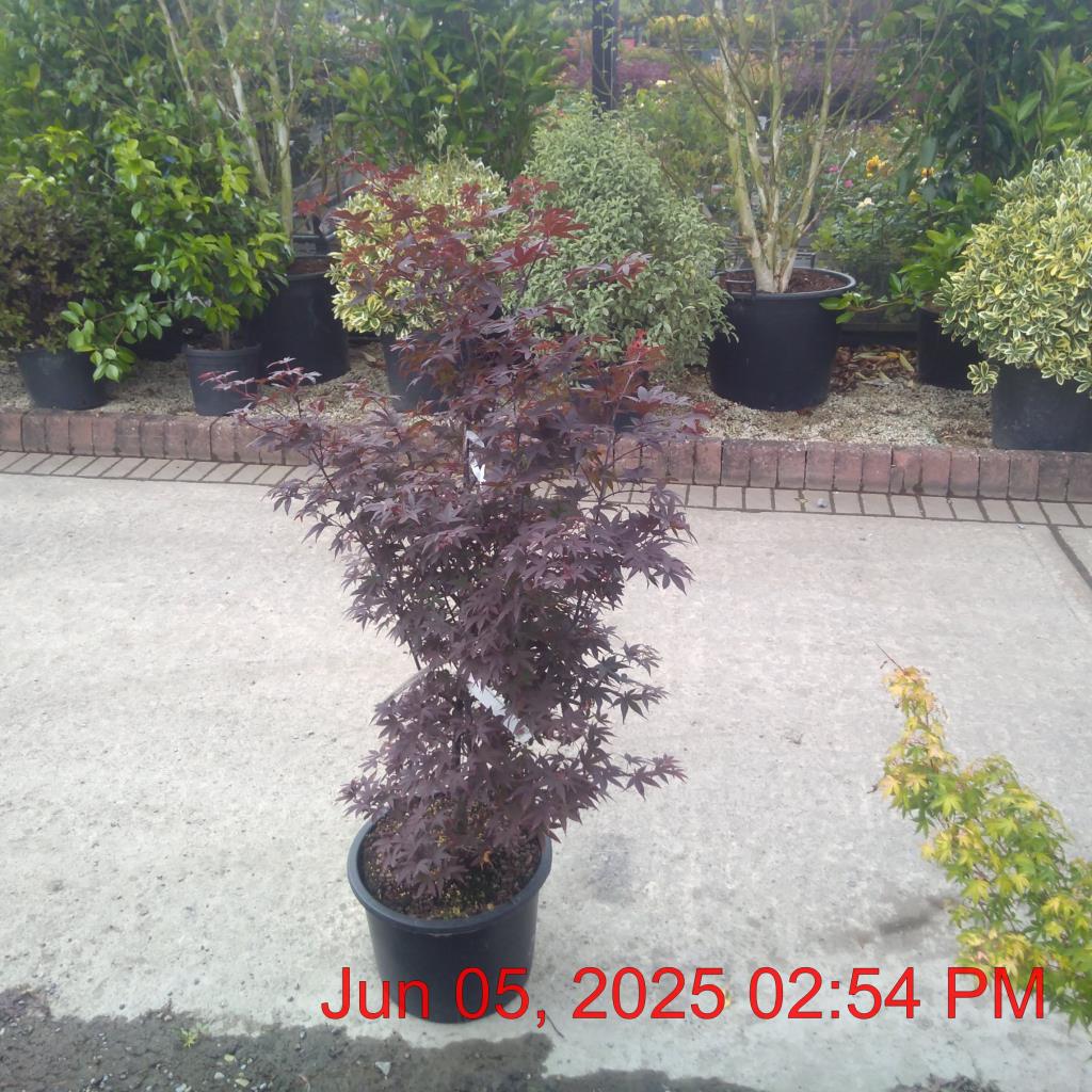 Japanese Maple. Small Columnar Habit. H4m S2m. Vibrant Claret Red/Purple Foliage. Fruit. Deciduous. Sun-Semi Shade.