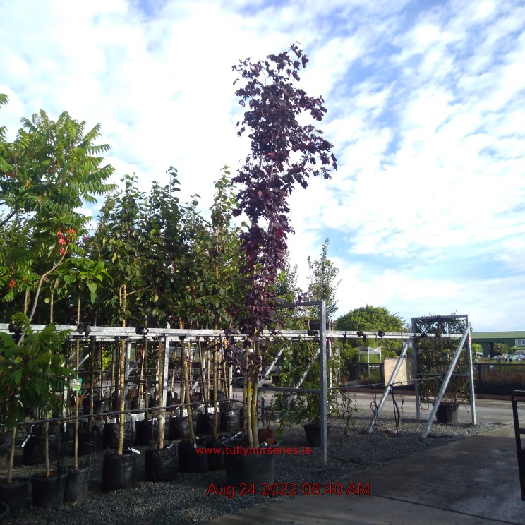 Norway Maple 'Royal Red'. Biodiversity. Orange Flowers Apr. H20m 9m. Large Maroon Purple Foliage. Autumn-Red. Deciduous. Sun-Semi Shade. Pollinator Bee Friendly. Butterfly Friendly.
