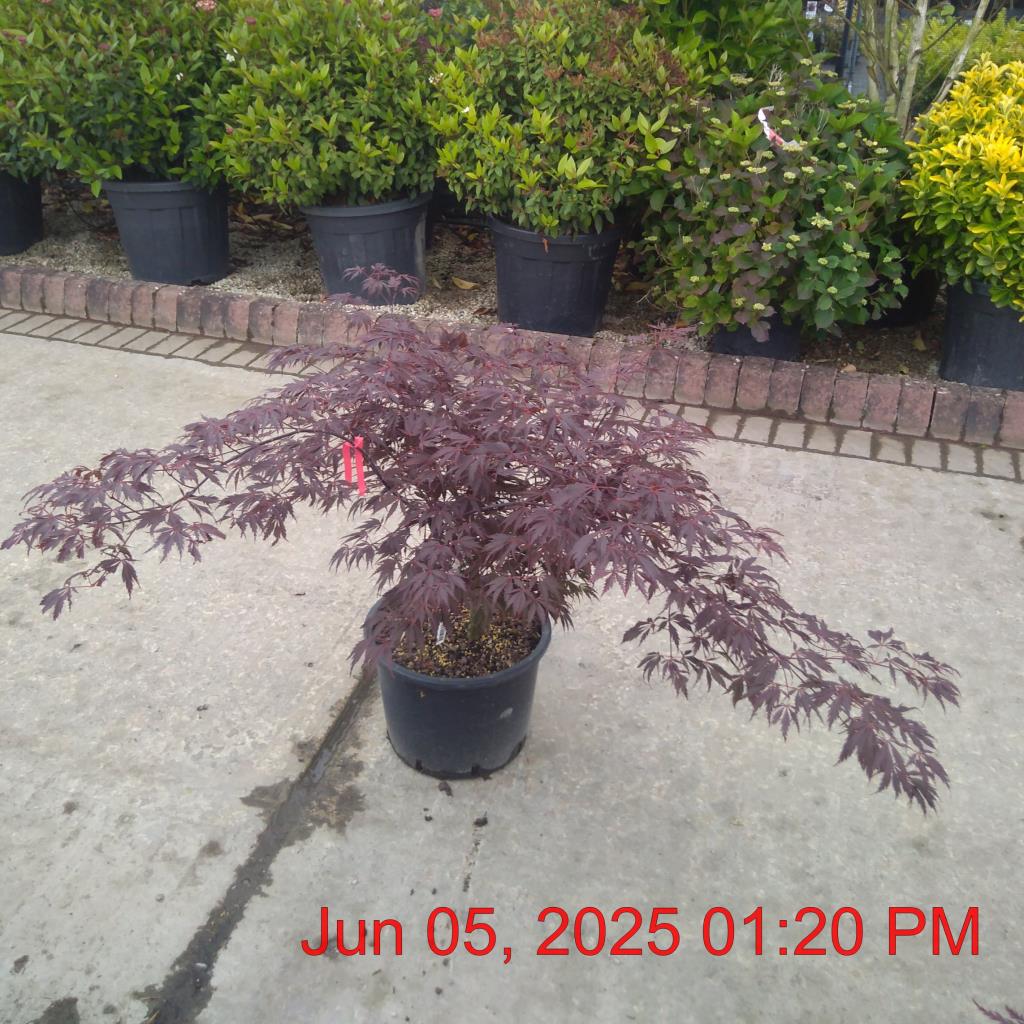 Red Flowers Apr. H5m S5m. Red Winged Fruit. Attractive Dark Purple Deeply Cut Foliage. Large Spreading Rounded Habit. Autumn Colour-Crimson. Wildlife. Shade Tolerant. Wind Shelter. Well Drained Sites. Deciduous. Sun-Semi Shade.