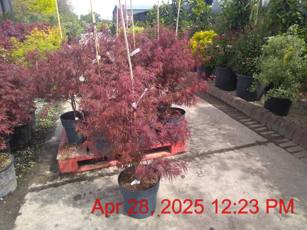 Japanese Maple. Tiny Green Flowers Apr. H4m S4m. Red/Purple Foliage. Autumn: Glowing Red. Deciduous. Sun Semi Shade.
