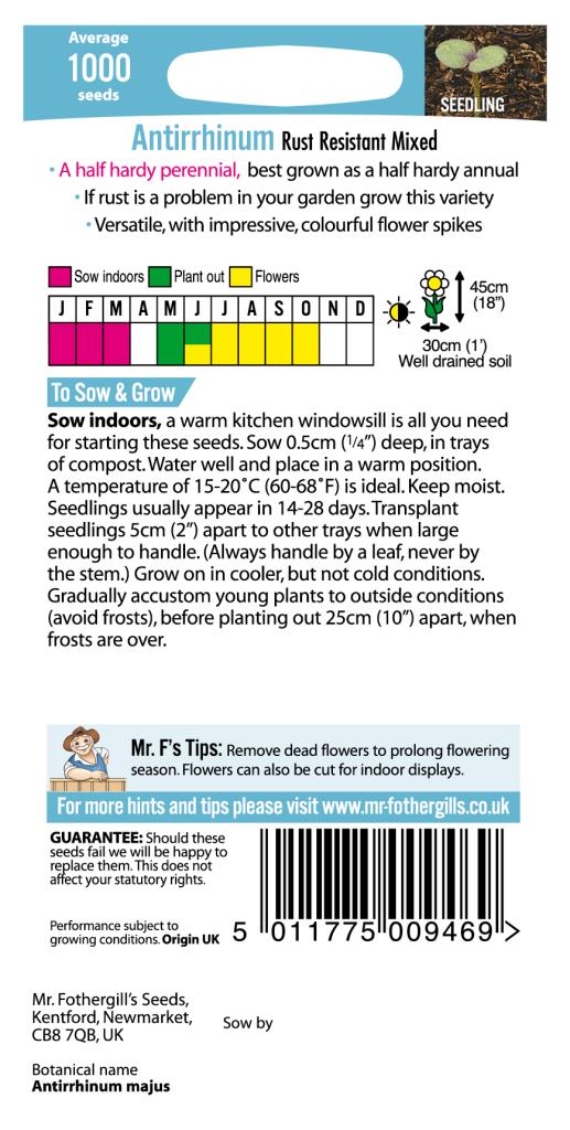 1000 Mixed Flowers Jun-Oct. H0.45m S0.3m. Sow: Jan-Mar. Long Flowering. Half-Hardy Perennial.
