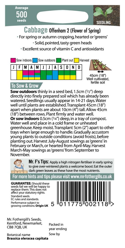 500/ Solid-Pointed Head. Sow: Mar-Jul. Harvest: Aug-May. Spring/Autumn Crop. An Old Favourite.