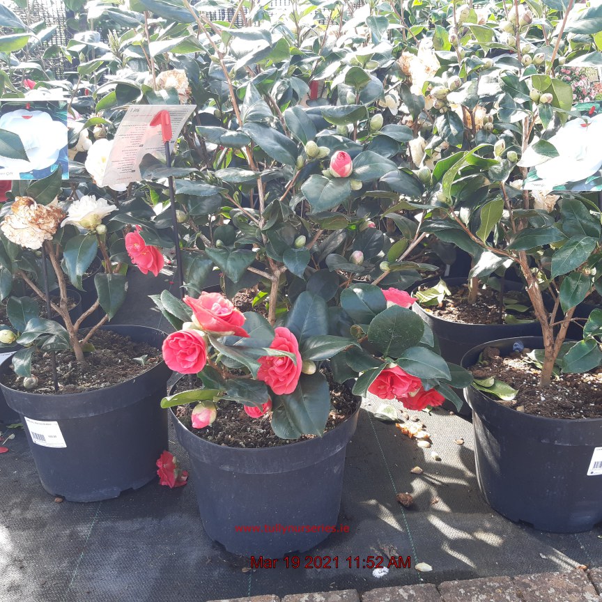 Bright Red Double Flowers Mar-May. H2m S2m. Vigorous. Evergreen. Shelter. Acidic. Sun-Semi Shade.