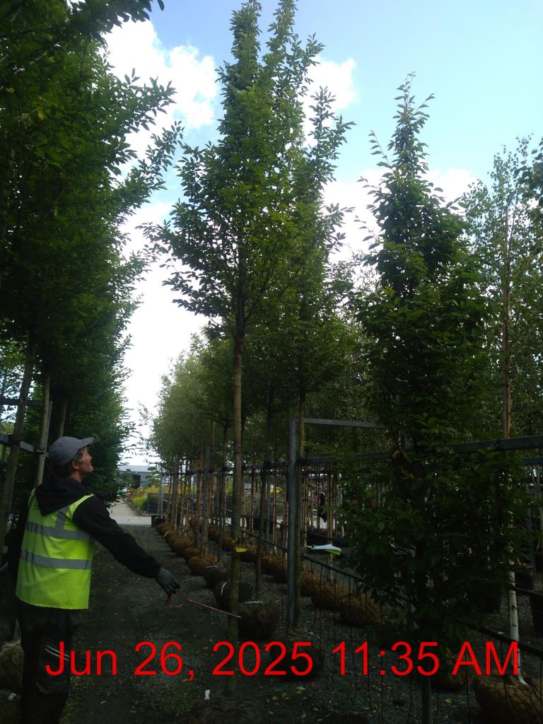 European Hornbeam Fastigiata. Biodiversity. Yellow Catkin Flowers Apr. H18m S12m. RHS Merit. Rich Honey Autumn Foliage . Round-Oval Habit. Deciduous. Sun-Semi Shade. Bird Friendly.