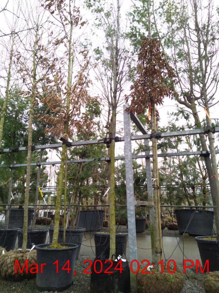 European Hornbeam Fastigiata. Biodiversity. Yellow Catkin Flowers Apr. H18m S12m. RHS Merit. Rich Honey Autumn Foliage . Round-Oval Habit. Deciduous. Sun-Semi Shade. Bird Friendly.