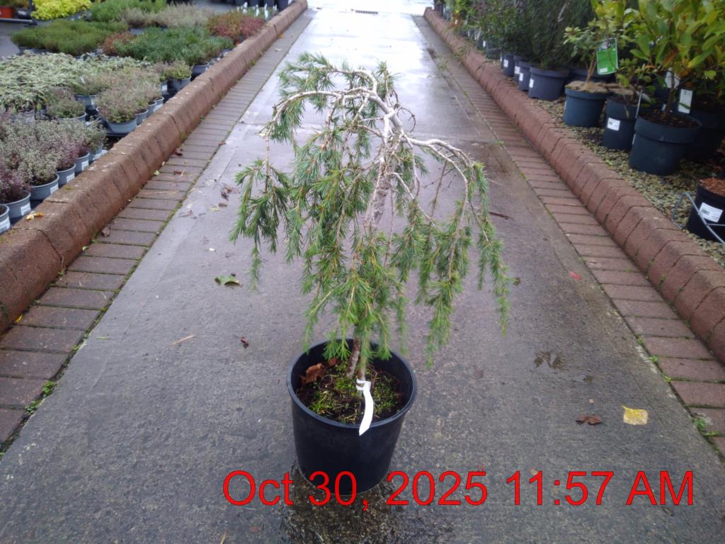 Deodar Cedar 'Golden Horizon'. Yellow/Blue Green Foliage. H1.5m S2m. Compact-Small Space. Graceful Prostrate Habit. Evergreen. Acid. Shelter. Sun-Semi Shade.