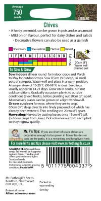 750/ Mild Onion Flavoured Leaves. Sow/Harvest: Jan-Dec. Salad. Decorative Flowers. Hardy Perennial.