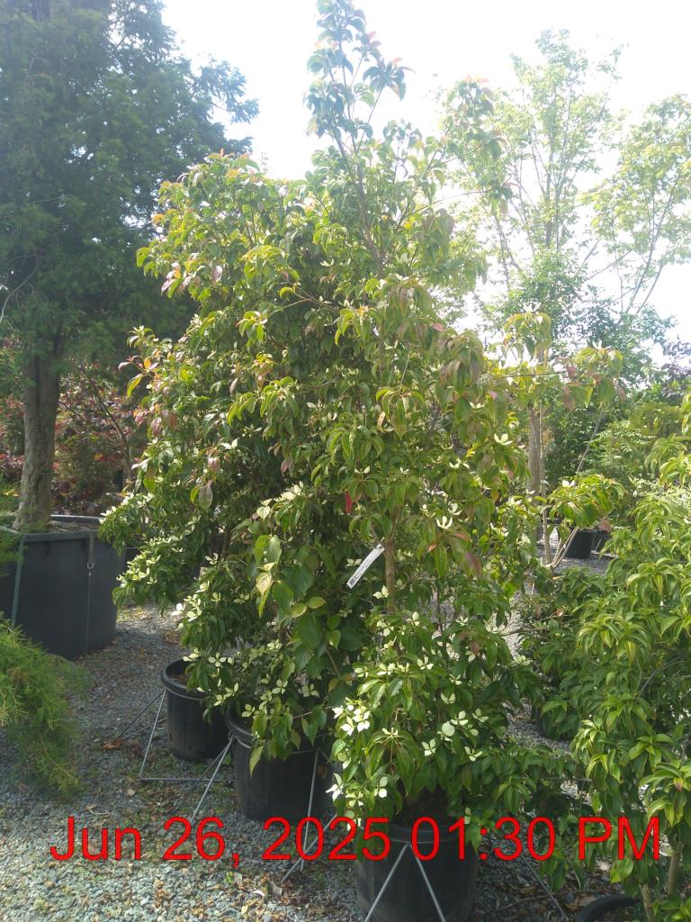 Hong Kong Dogwood. Large Creamy White Bract Flowers May-Jun. H5m S3m. Fruit. Edible. Autumn: Bronze Foliage. Bushy Habit. Wildlife. Shelter. Moist Well Drained SitesEvergreen. Sun-Semi Shade. Pollinator Butterfly Friendly. Bird Friendly.