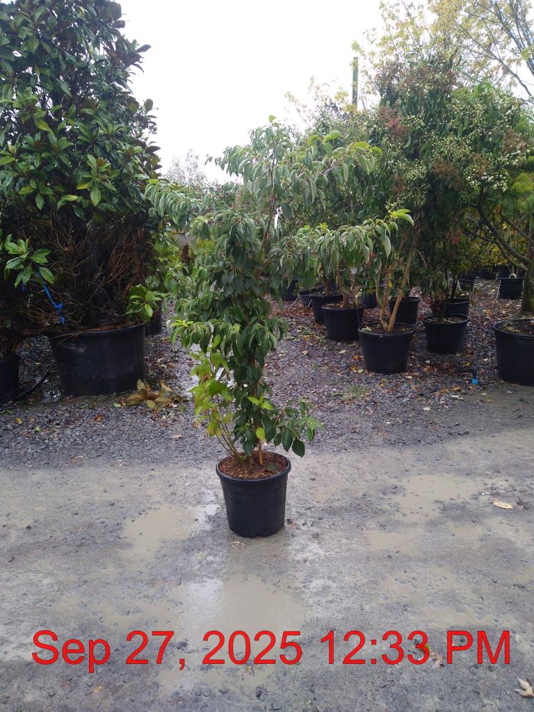Cream Flowers May. H10m S8m. Autumn-Purple/Plum Hue. Fruit. Inky Stems. Deciduous. Sun-Semi Shade.