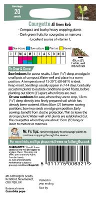 20 Large Crops. Sow: Mar-May. Harvest: Jul-Oct. Dark Green Fruits. Excellent Vitamin C Source.