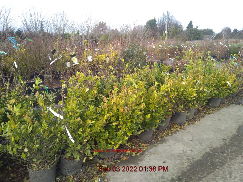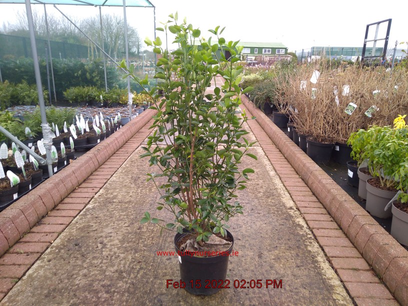 White/Lime Flowers May-Jun. H3m S3m. Glossy Green Foliage. Topiary-Trait. Evergreen. Sun-Semi Shade.