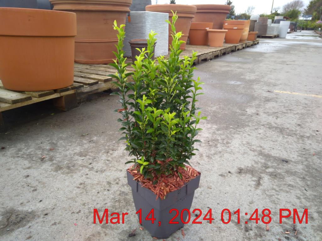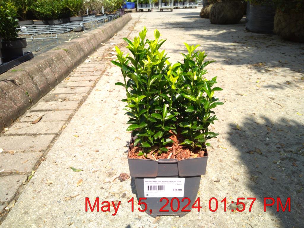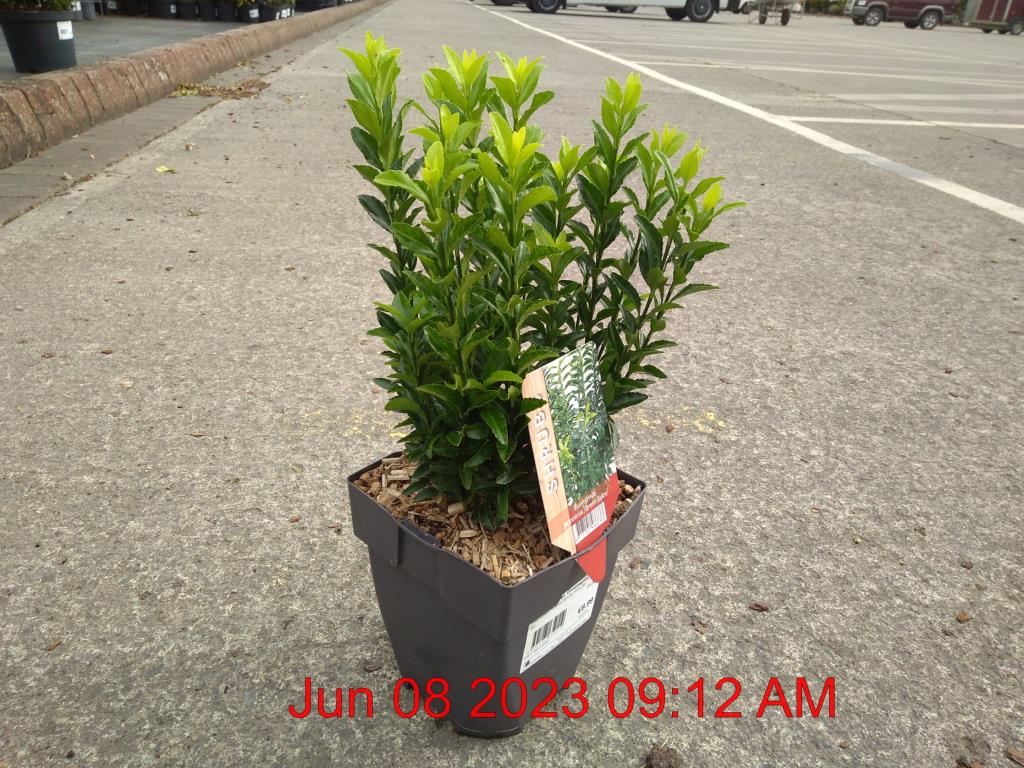 Japanese Spindle 'Green Spire'. Pale-Green Flowers Jun-Jul. H1m S0.5m. Fruit. Buxus-Like Glossy Foliage. Topiary Traits. Pest / Disease Resistant. Evergreen. Sun-Semi Shade.