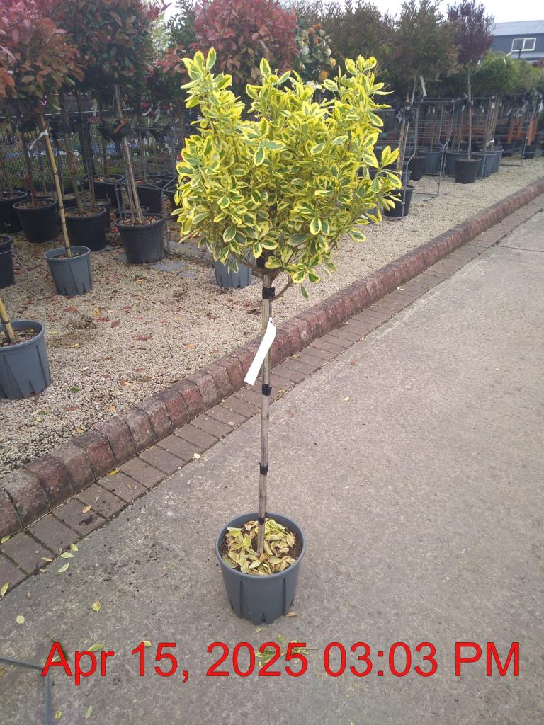 H:1-2m|Flowers:Insignificant|Evergreen|Variegated foliage, topiary form|Sun/part shade|Hardy:Yes|Bees:Low-foliage plant, provides shelter structure