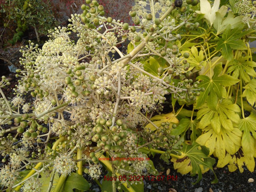 Biodiversity. White Flowers Sept. H4m S4m. RHS Merit. Wildlife. Huge Leather Foliage. Evergreen. Sun-Semi Shade.