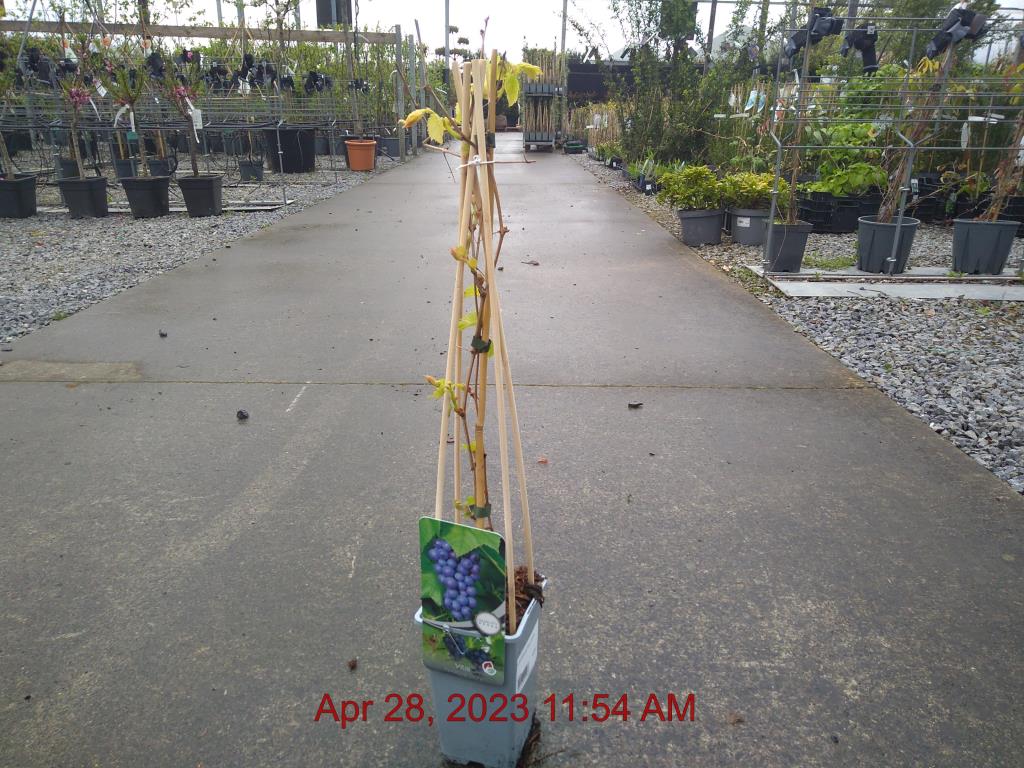 Grape 'Boskoop Glory'. Edible Sweet Navy Grape. Har: Aug+. H8m S4m. Green Flowers: May. Almost Seedless. Self Fertile. Autumn - Coral / Scarlet Foliage. Fast Growing. Disease Resistant. Deciduous. Shelter. Sun-Semi Shade. Sensory Taste