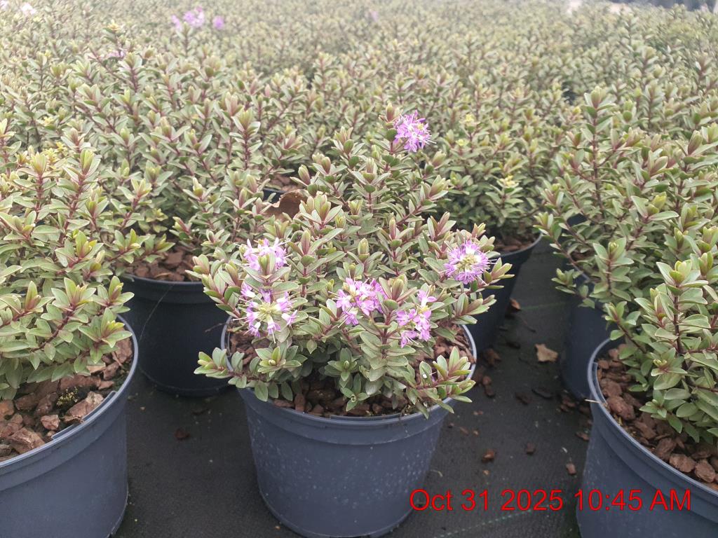 Violet Flowers Jun-Sept. H0.5m S0.5m. Compact. Strong Red New Growth. Evergreen. Sun-Semi Shade.
