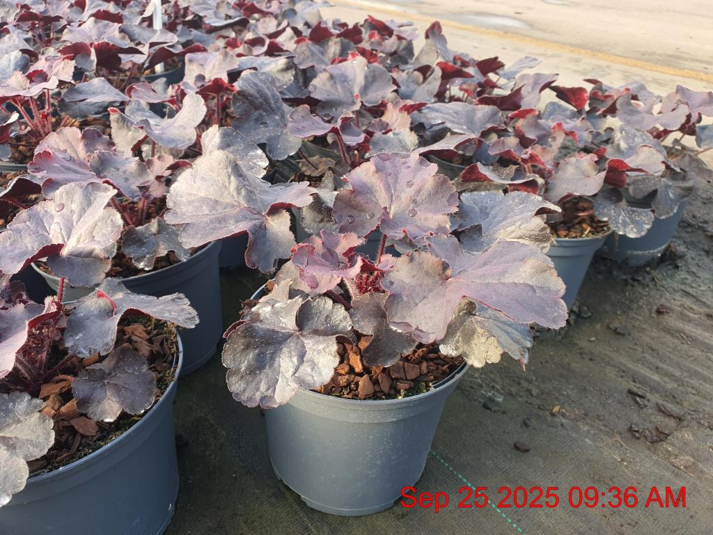Coral Bells 'Black Forest Cake'. Biodiversity. Small Bright Cherry-Red Flowers Apr-May. H0.3m S0.3m. Cut Flower. Drought Tolerant. Wildlife. Deciduous. Sun-Semi Shade. Pollinator Bee Friendly. Butterfly Friendly.