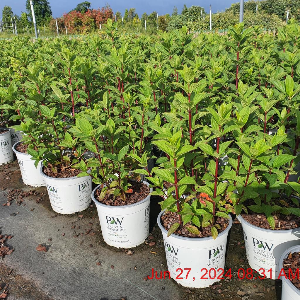 Panicle Hydrangea 'Limelight Prime'. Large Fading Chartreuse- Cream -Pink Flowers Jul-Oct. H1.8m S1.3m. Cut Flower. Strong Compact Stems. Upright Habit. Prune Early Spring. Deciduous. Sun-Semi Shade.
