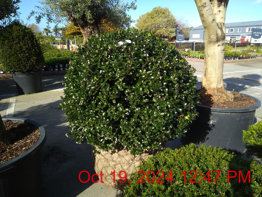 White Flowers May. H4m S2.5m. Red Fruit. Purple-Green Hue. Glossy Soft Serrated Foliage. Dense Round Habit. Pots / Containers. Slow Growing. Wildlife. Requires Pollinator. Pollution Tolerant. Urban Sites. Well Drained Sites. Evergreen. Sun-Semi Shade.