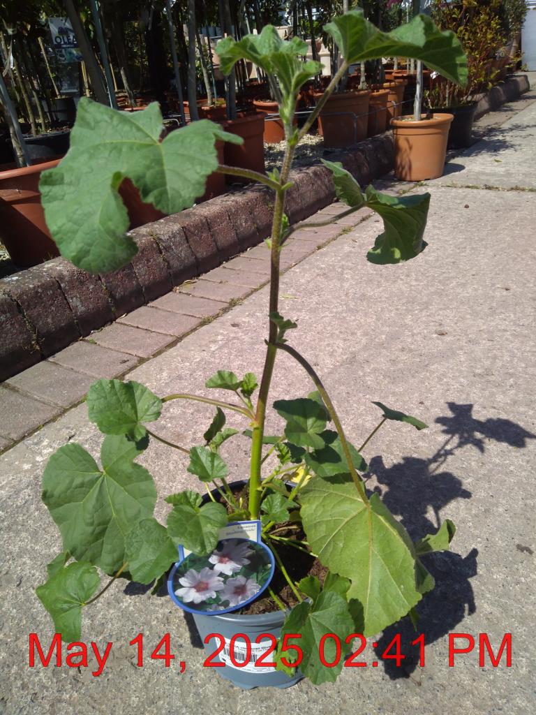 Tree Mallow 'Blushing Bride'. Bright White - Deep Pink Eye Flowers Jun-Oct. H1.5m S1.5m. Cut Flower. Pots/Containers. Fast Growing. Lengthy Bloom. Late Colour. Moist Well Drained Sites. Winter Shelter.Semi-Evergreen. Sun-Semi Shade.
