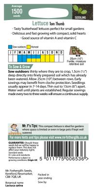 1500 Compact Butterhead. Sow: Mar-Aug. Harvest: May-Oct. Sweet Solid Heart. Maturing Early/Quickly.