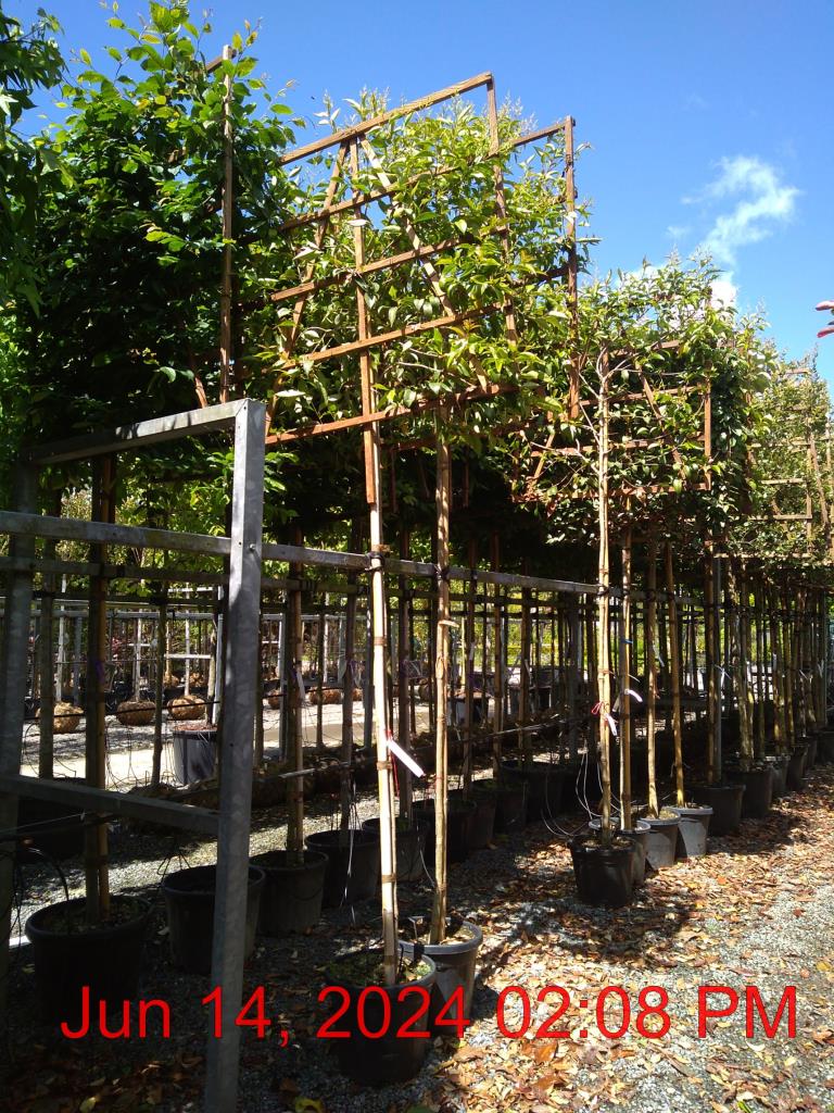 White Flowers Sept-Oct. H7m S2.5m. Dark Green Glossy Foliage. Screening. Evergreen. Sun-Semi Shade.