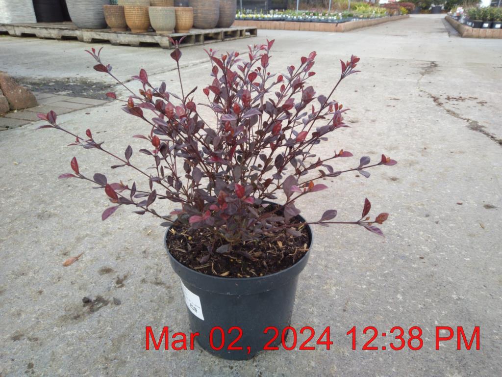 White Flowers Jun-Jul. H1.5m S1m. Burgundy/Cream/Pink Foliage. Fruit. Evergreen. Sun-Semi Shade.