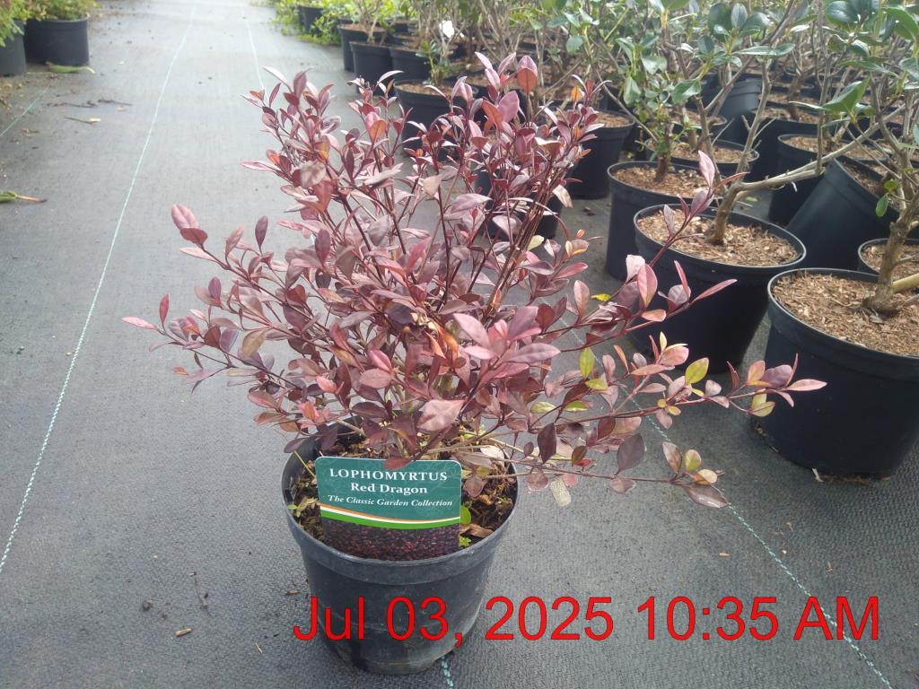 White Flowers Jun-Jul. H1.5m S1m. Burgundy/Cream/Pink Foliage. Fruit. Evergreen. Sun-Semi Shade.