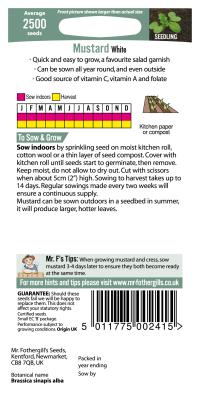 2500/Favourite Salad Garnish. Sow: Jan-Dec. Harvest: Jan-Dec. Quick/Easy Crop. Year Round Growth.
