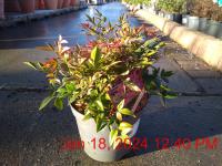 White Conical Cluster Flowers Jun-Aug. H0.7m S0.6m. Fruit. Attractive Scarlet Red-Green Foliage. Graceful Compact Upright Habit. Indoor / Outdoor. Year-Round Interest. Compact. Pots / Containers. Wildlife. Shelter. Moist Well Drained Sites. Drought Tolerant. Shade Tolerant. Evergreen. Sun-Semi Shade.