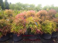 White Conical Cluster Flowers Jun-Aug. H0.7m S0.6m. Fruit. Attractive Scarlet Red-Green Foliage. Graceful Compact Upright Habit. Indoor / Outdoor. Year-Round Interest. Compact. Pots / Containers. Wildlife. Shelter. Moist Well Drained Sites. Drought Tolerant. Shade Tolerant. Evergreen. Sun-Semi Shade.