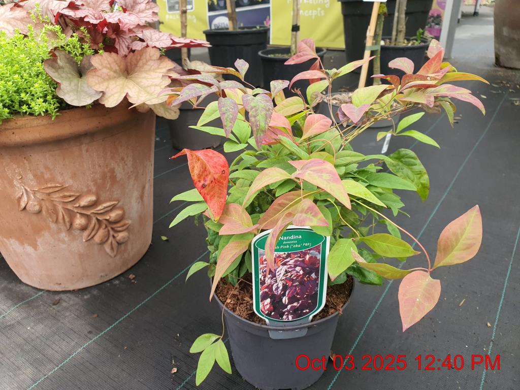 Heavenly Bamboo 'Blush Pink'. White Flowers Jul. H0.75m S0.75m. Vivid Pink-Lime Green Foliage. Autumn Hues. Fruit. Pots / Containers. Year-Round Interest. Shelter. Moist Well Drained Sites. Drought Tolerant. Evergreen. Sun-Semi Shade.