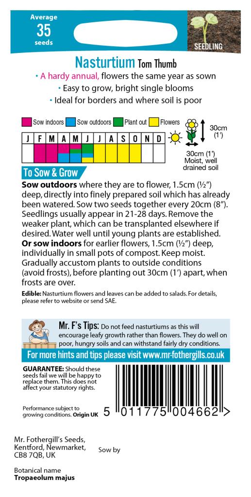 35/Vibrant Single Bloom. H0.3m S0.3m. Sow: Feb-Jun. Flowers: Jun-Oct. Poor Soils. Hardy Annual.