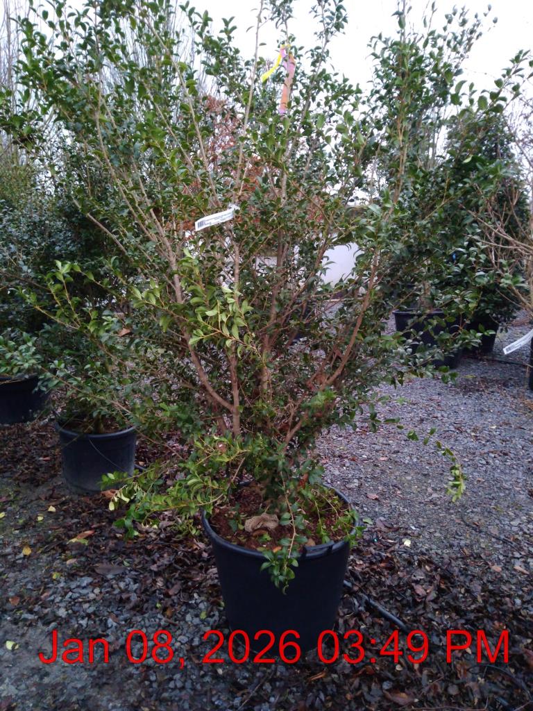 White Flowers Sept-Oct. H4m S4m. RHS Merit. Scent. Fruit. Dense Habit. Evergreen. Sun-Semi Shade.