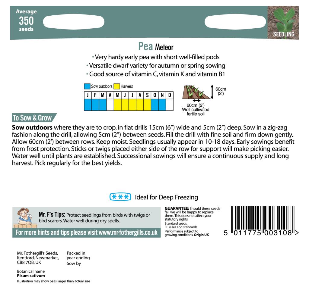 350/Hardy Dwarf Variety. H1m. Sow: Jan-Mar/Oct-Nov. Harvest: May-Sept. Suitable For Exposed Sites.