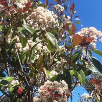 Creamy White Cluster Flowers Apr-May. H4m S4m. Vibrant Red/Green Foliage. Pots/Containers. Year Round Interest. Bushy Upright Habit. Wildlife. Ideal Hedging. Wind Shelter. Tolerates Hard Pruning. Drought Tolerant. Moist Well Drained Sites. Evergreen. Sun-Semi Shade.