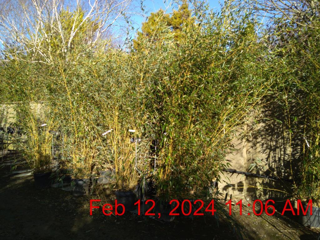 Luminous Yellow Culms. H8m S4m. RHS Merit. Rich Pink Hue. Evergreen. Sheler. Water. Sun-Semi Shade.