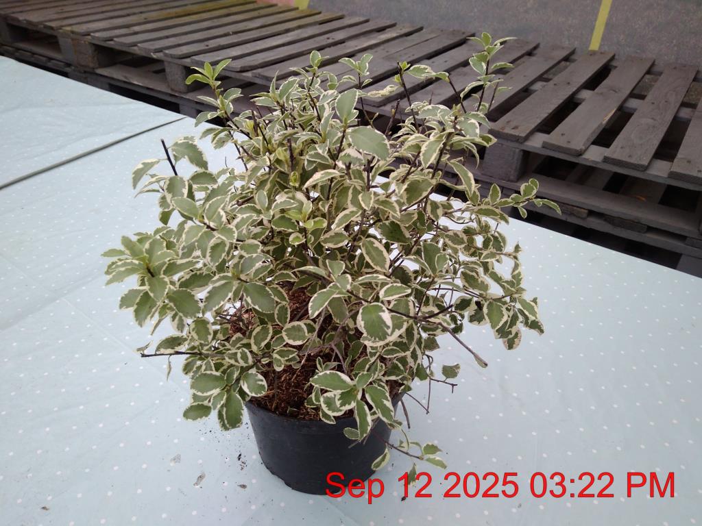 Purple/Brown Flowers Apr-May. H4m S2m. Scent. Olive/White Rim Foliage. Evergreen. Sun-Semi Shade. Drought Tolerant.