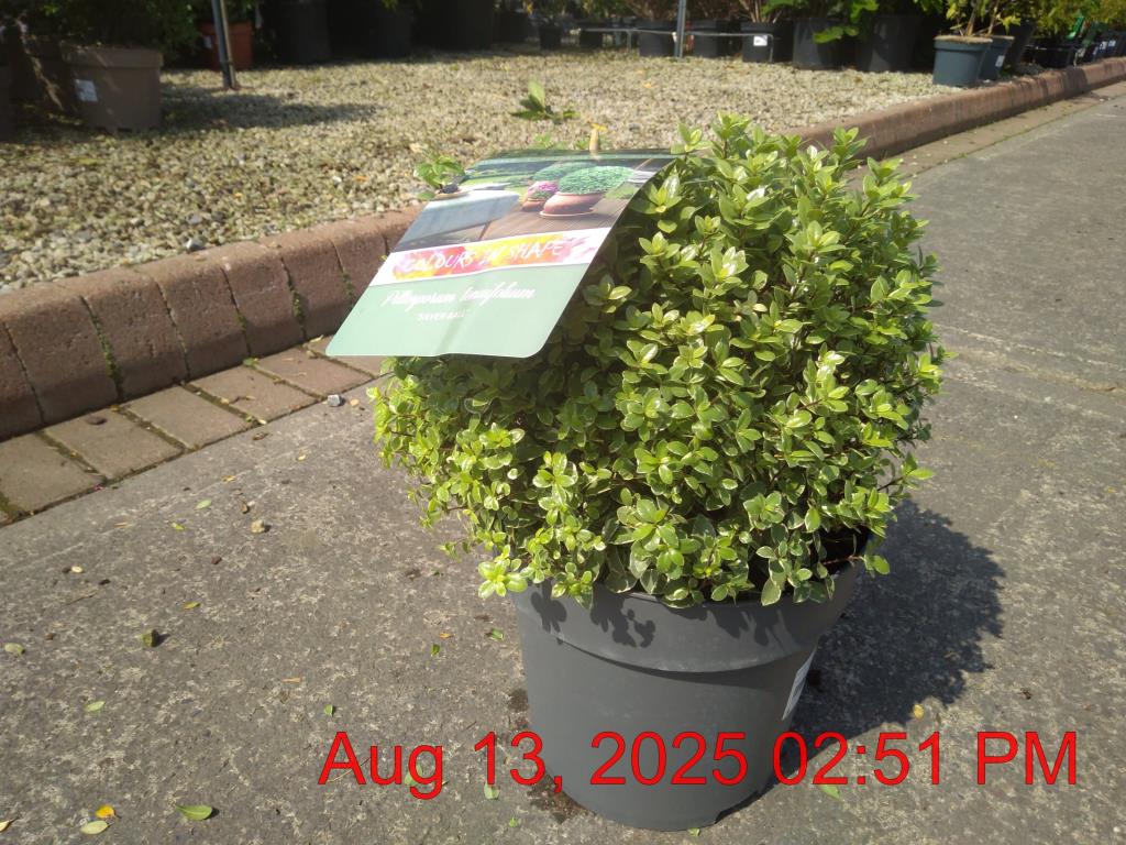 Purple Flowers May-Jun. H1m S1m. Scent. Attractive Grey-Green/Silver Margin Foliage. Pots/Containers. Compact Dense Spherical Habit. Wildlife. Year-Round Interest. Topiary Traits. Drought Tolerant. Cold/Wind Shelter. Evergreen. Sun-Semi Shade.
