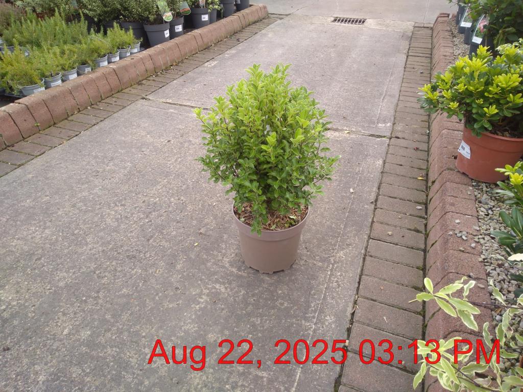 H:2-4m|Flowers:Small white, fragrant|Evergreen|Variegated foliage, Irish bred|Full sun, sheltered|Hardy:Yes|Bees:High-small fragrant flowers beloved by beneficial insects